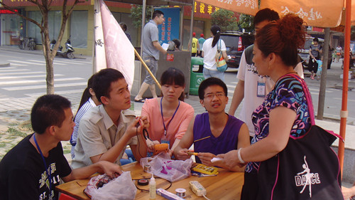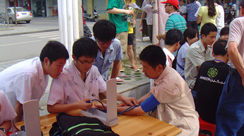 上午九点钟,一行人到达立新社区,马上摆摊设点、进行宣传服务。不久,便有许多居民前来问诊、寻求帮助,工作人员很热情的接待了他们,我院科协负责维修居民坏了的电器、医学院青志给前来的居民量血压、药科青志则帮助他们更加深入的了解健康知识,此外,其他工作人员也忙的不亦乐乎,热情的为他们服务,在把关怀带给社区的同时,也传递了爱心,传播了文明,展示出南华人积极向上的精神风貌。此次活动也让大学生培养了组织与领导,进一步的深入社会,了解社会,发挥最大潜能。