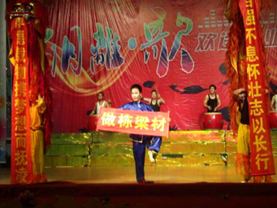 这是一场以毕业生为表演主体、以告别为主题的千人KTV音乐盛会。伴随帷幕的拉开,一首《克罗地亚狂想曲》以明快的节奏预热了现场气氛,由赵院长领衔的学院教师合唱团更是以一首《年轻的朋友来相会》让台下一片沸腾。节目进行的过程中,新浪微博上的呼声也逐渐热烈起来,有老师们的临别祝福,有校友的殷切寄语,有兄弟学院发来的贺词,更有同学间的依依惜别和表白之类的真情流露。主持人报幕与幻灯片简介协同串接着一个个火热的节目。合唱《我的好兄弟》诠释了真挚的兄弟情,国防生送别老兵的音乐剧《再见了老兵》挥泪舞台,院十佳歌手冠军李昌应一首《我相信》震惊全场,禹敏老师与乐队协同演出的《飞得更高》更是将现场气氛带到最高峰,最后,改写历史的电气篮球队以一曲《相信自己》激起一阵阵“电气,威武”的高昂呐喊。在《狮舞青春》的对联祝福后,历时三个小时的毕业生晚会完美落下帷幕。