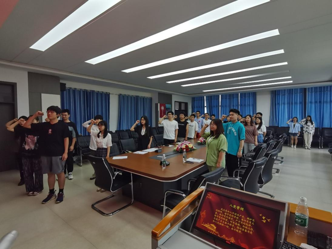 支部书记袁梦甜老师向转为正式党员的6位同志表示衷心的祝贺,肯定了他们一年来在政治思想和各自工作岗位上取得的显著进步和成绩。她对全体党员提出要求,作为党员务必在工作上有闯劲、有创新、做表率;要增强行为自觉,不断增强“凡事讲政治、谋事为群众、干事重实效、成事争一流”的政治担当。同时,她对毕业生党员寄予殷切希望:无论身处何处,都应该自觉增强党性修养,严格履行党员的权利、义务。会议末,全体党员宣誓入党誓词。