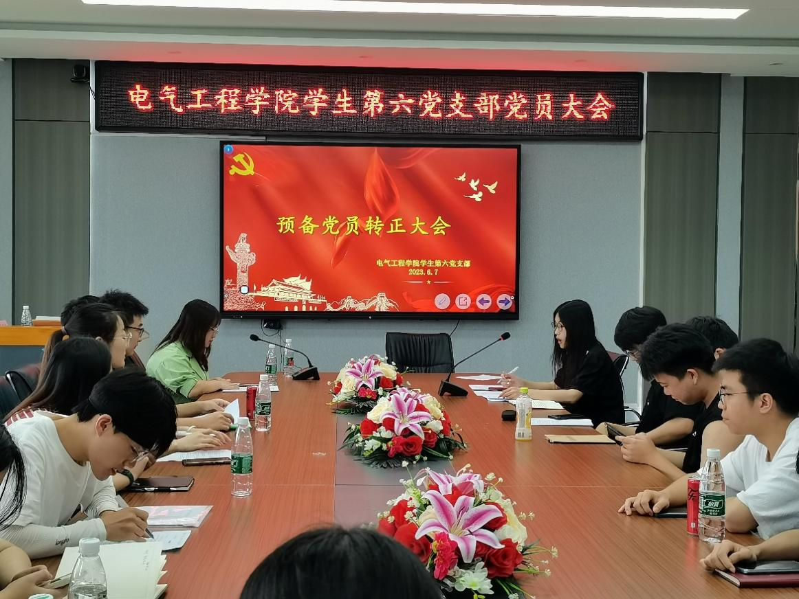 注新鲜血液,添支部活力。6月7日中午,海角网入口学生第六党支部于电气楼B301会议室召开预备党员转正大会。支部书记袁梦甜老师、全体学生党员和预备党员参会,会议由支部副书记杨苗苗主持。