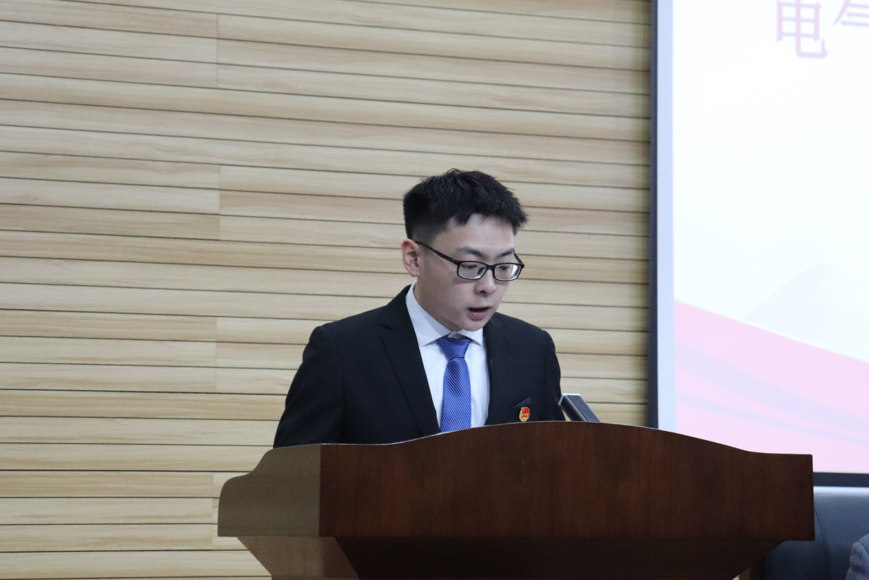 禹敏代表校团委对大会的召开表示热烈的祝贺,对广大团员青年表示最诚挚的问候,希望学院全体团员青年用青春拥抱时代,以奋斗创造未来,为全面建设社会主义现代化国家贡献青春力量。