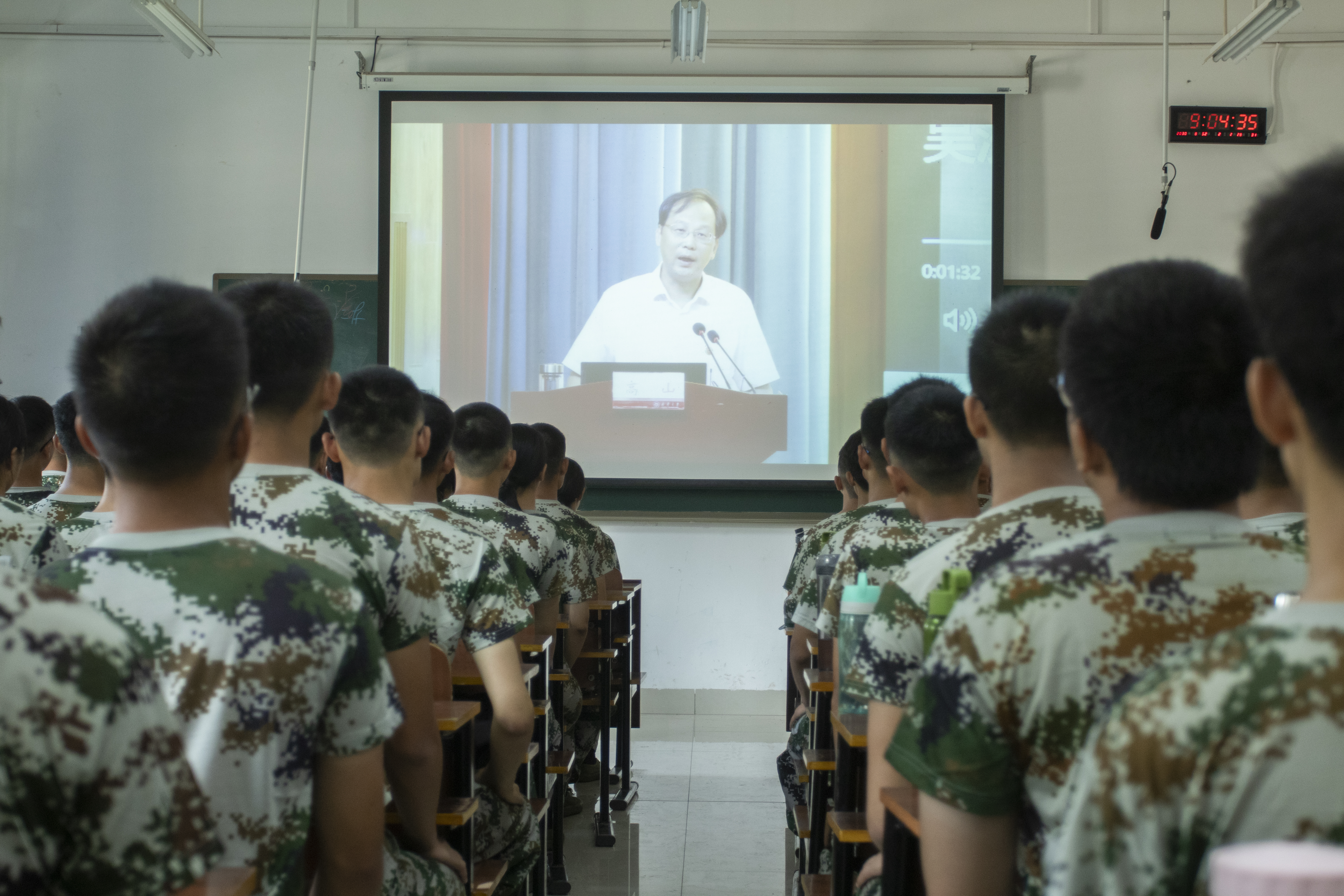 课上高山书记围绕着今年设计别致的录取通知书介绍了南华的校徽、校训以及学校内标志性建筑的特殊意义。小小的通知书并不简单,它还承载着南华的精神,南华的办学理念,南华的精神追求。高书记带领新生“溯源南华”,通过影片了解南华的历史。悠久的历史映射着我们永恒不变的初心——为国计民计而生。一代代南华人60余年来在“辐射”、“放射”和“传染”、“感染”等充满风险和敏感的职业中,既“吃得了苦”又“霸得了蛮”,将青春写入诗篇。最后高山书记希望新同学们进入南华:脚踏实地、不负韶华;努力追梦,只争朝夕。