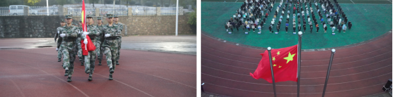 早上7时,在全体师生的注目礼下,预备役国旗班学员护送国旗迈着铿锵有力的步伐走向旗台,伴随着国歌雄壮、悠扬的旋律,五星红旗冉冉升起。