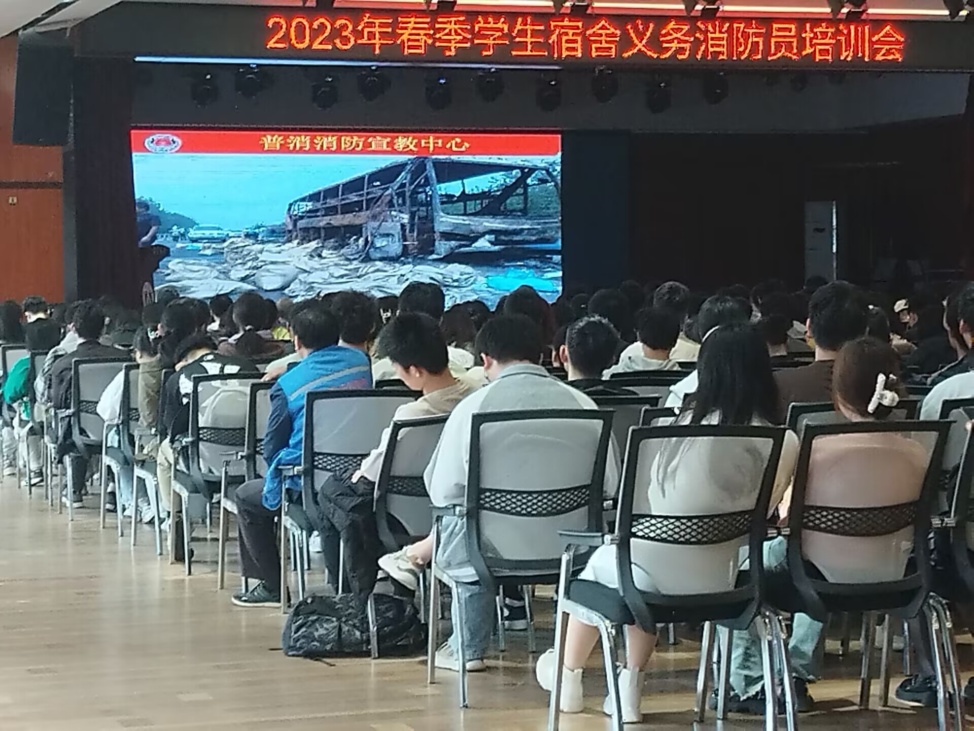 为了提高大学宿舍的火灾防控能力,增强班级生活委员和宿舍长对火灾的应急处理能力,海角网入口2023年3月27日组织开展2023年春季义务消防员培训。