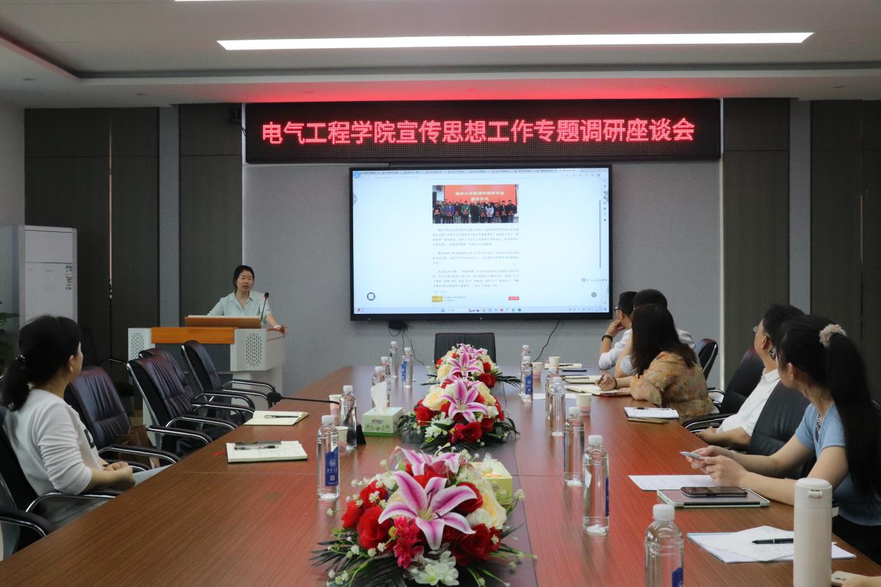 4月20日上午,校宣传部常务副部长代艳丽和舆情与新媒体中心夏文辉老师来访我院开展宣传思想工作专题调研,并于电气楼会议室B301召开座谈会。出席本次会议的成员有我院党委书记盛义发、党委副书记王国平、副院长阳璞琼、辅导员袁梦甜以及我院宣传部学生干部。
