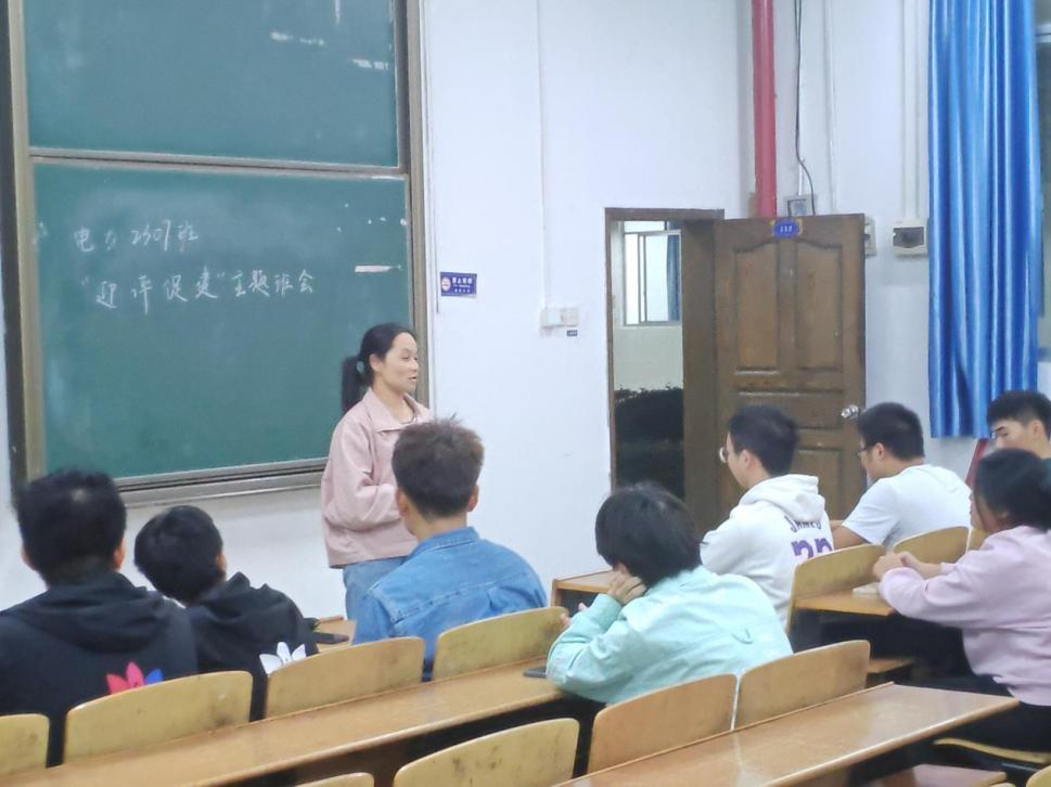 各班级均在积极组织和周密规划下顺利开展主题班会。各班班会由学生班委组织策划,并邀请班主任现场进行指导。班会以课件案例、师生交流、班级讨论等多种形式展开,讨论议题紧密围绕"迎评促建树新风"展开,主要包括校园电动车安全、学生宿舍安全教育和课堂管理等。