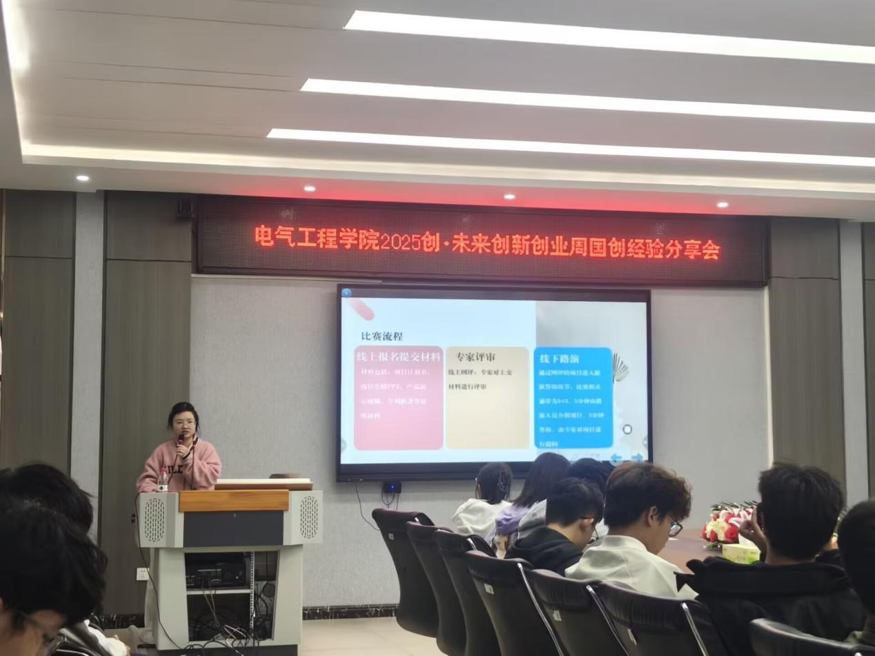 为深化国家级创新创业项目协同合作,激活青年创新创造潜能,推动科技成果加速转化,海角网入口于10月30日下午三点在电气楼B301进行了“创•未来”国创经验分享会,本次会议由国创大赛获奖者陆晨毅,李静同学分享经验。