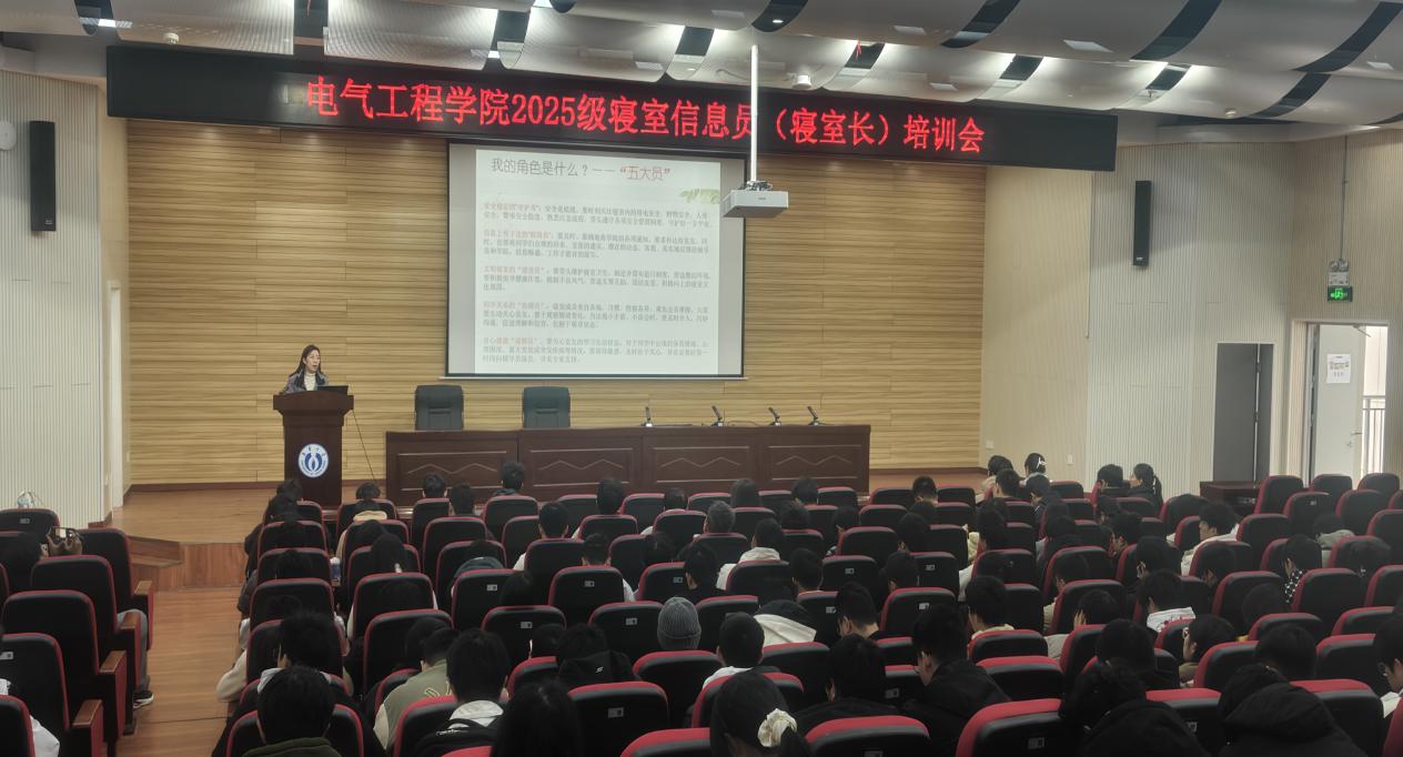 为进一步强化寝室管理工作,明确寝室信息员(寝室长)的职责使命,充分发挥其在学生管理中的桥梁纽带作用,12 月 5 日中午,海角网入口于崇业楼学术报告厅成功举办2025 级寝室信息员(寝室长)培训会。本次培训由辅导员周珍珍老师主讲,全体2025级寝室信息员(寝室长)参会。