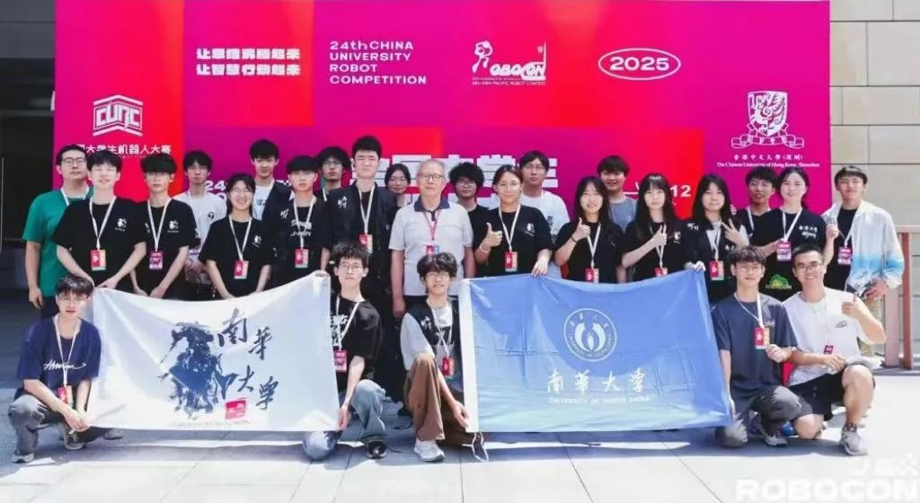 8月5日至12日,南华大学“衡山π”机器人战队,在全国大学生机器人ROBOCON年度赛事中一举斩获4项全国一等奖、4项全国二等奖、1项全国三等奖以及“足式全能奖”、“足式最佳设计奖”“优秀指导老师奖”共计12项荣誉,取得了创队以来的最佳战绩。从2016年秋科创楼木桌前许下为校争光的青春誓言到2025年深圳赛场的荣耀绽放,南华大学“衡山π”机器人战队用九年时光书写了一段从无到有的奋斗传奇。让全国大学生见证了南华学子的卓越风采与昂扬意气。