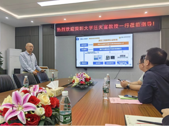 谭誉宇副院长首先表示热烈欢迎汪天富教授一行莅临学院合作交流并致辞,杨斌副院长介绍了南华大学海角网入口的基本情况,提出在全国积极建设一流专业和推动工程认证的背景下,希望双方通过相互交流、增进了解,加强在教育教学、科学研究、专业建设、人才培养、课程建设等方面多方位、多层次合作。