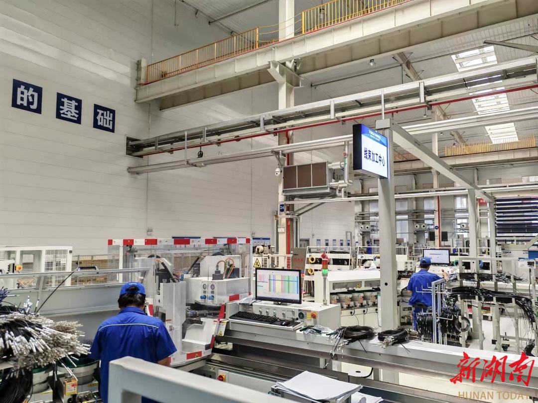 线束加工中心,员工录入工单即可“秒产”一根根长度不一、规格各异的线束。湖南日报全媒体记者 唐曦 摄