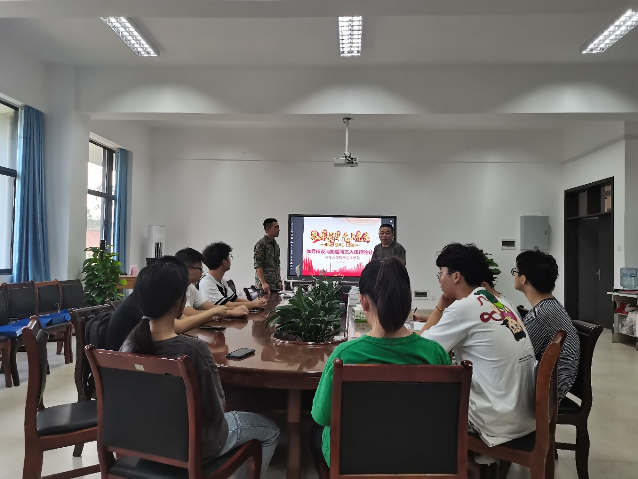 冯旭超为我院2020届毕业生,毕业当年即响应国家号召应征入伍。入伍后,在部队刻苦训练并获得了很好的成长。会上,冯旭超讲解了大学生入伍的意义和流程,分享了备考军校的经验等。他还从入伍初衷、军旅生活到个人蜕变等方面展开分享,介绍了自己在部队的日常训练及所见所学。他希望同学们能积极相应国家号召,为国防建设做出力所能及的贡献。会议最后,王博老师结合自己的从军经验,鼓励大学生参军入伍。同学们纷纷表示备受鼓舞,本次交流会在同学们的掌声中圆满结束。
