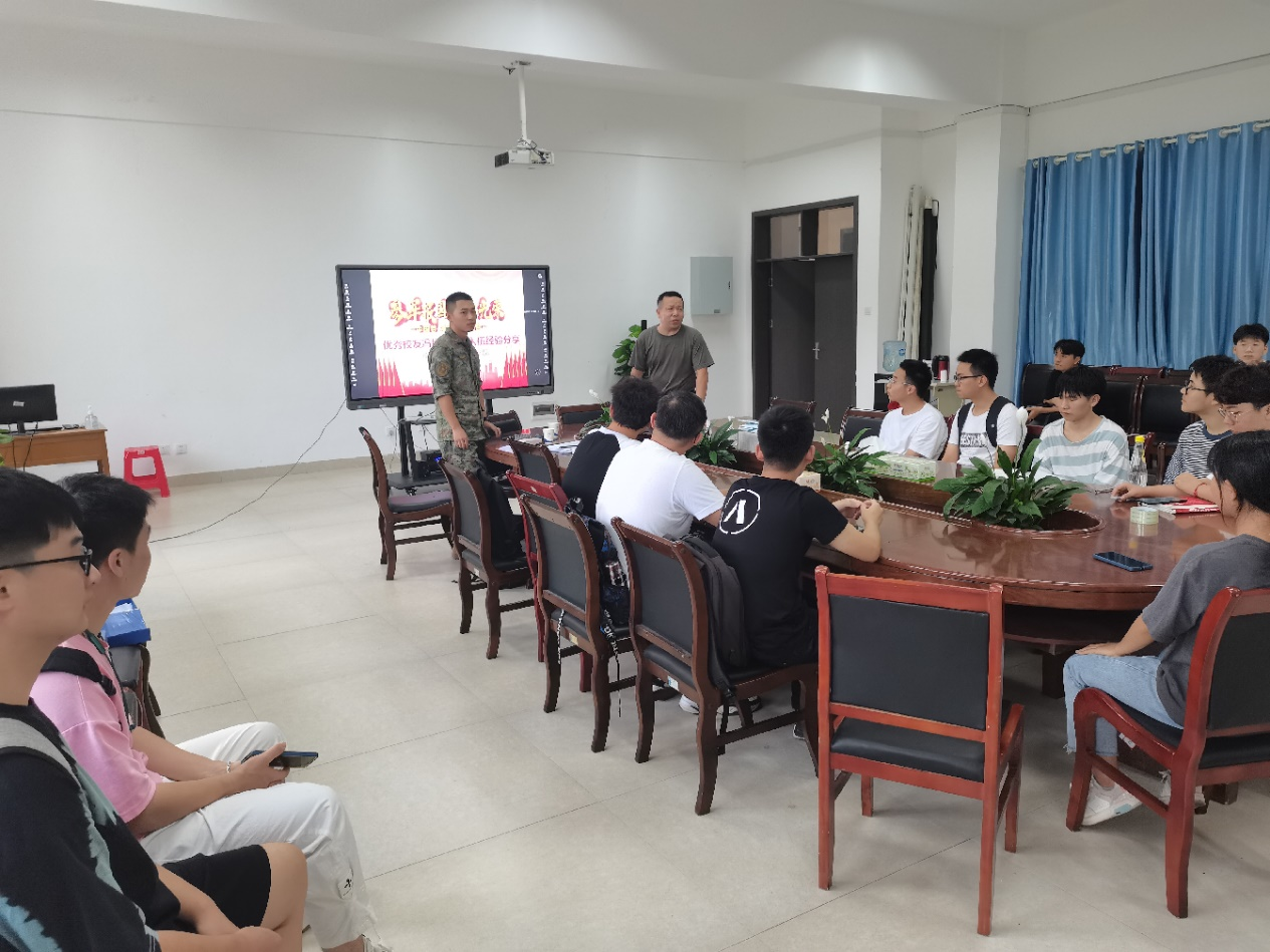 9月7日下午,南华大学海角网入口在电气楼B303举办优秀校友冯旭超入伍经验分享交流会。会议由学工室王博老师主持,40余名学生代表参加会议。