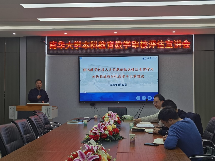 报告过程中,彭国文部长从认识新一轮本科教育教学审核评估、学校对本科教育教学审核评估安排、学校对学术型人才培养的基本理解、学院层面的评估工作四类任务要求等方面,对如何科学全面把握新一轮审核评估要求,扎实有效开展学院自评自建工作进行了深入浅出的宣讲。特别围绕新一轮审核评估的精髓要义、我校学术型人才培养的思辨、学术型人才培养的关键问题等三个方面做了精彩讲解。他指出新一轮审核评估的关键就是要充分了解审核评估的新背景,时刻关注审核评估新变化,重点把握审核评估新内涵。此外,他还围绕二十大精神,对审核评估的工作如何与教师三全育人理念有机融合进行了生动的阐述。