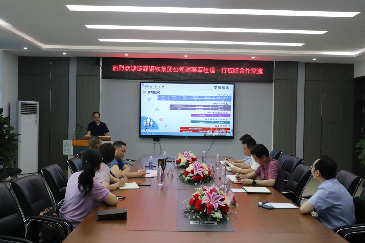 副院长谭誉宇介绍了学院专业设置、人才队伍培养以及科研平台建设。谭燕军介绍了公司的基本情况、产业布局以及企业产值,表示希望与学院建立合作桥梁,助力企业高新技术发展,解决企业研发难点,产生互利互惠的成果转化,奠定人才引进与长远发展的坚实基础。