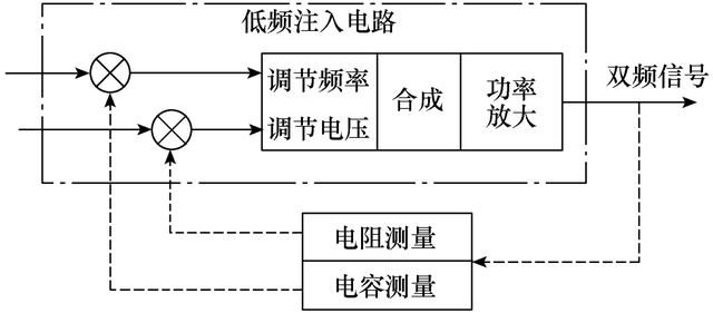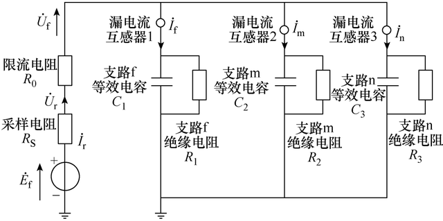 实现在线绝缘监测的主要方法是低频双频叠加法,通过多次在线测试表明,低频电压幅值和频率的选取对绝缘检测精度有重要影响。当系统发生单相接地故障时,绝缘电阻偏大、分布电容过大会引发注入源回路电流偏小和故障支路阻性电流分量偏小的问题,从而导致测量误差,无法满足绝缘监测精度要求。