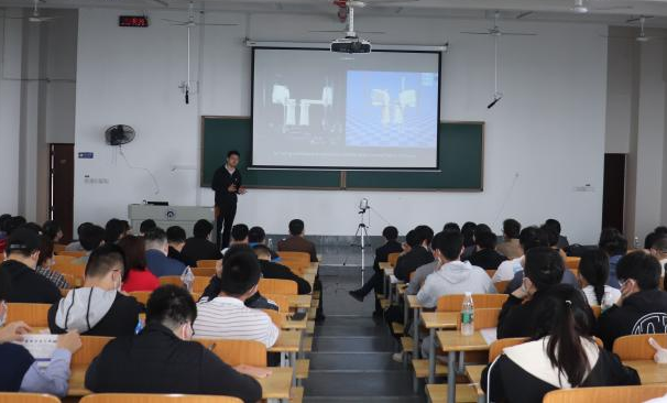 何弢教授用一个极具吸引力的人工智能机器人视频抓住了师生们的注意,接着通过一系列自己公司制作的多功能机器人吸引了现场师生的眼球,结合视频的展示,何弢教授对智能机器人和自动驾驶的传感系统、软件算法、定位、跟踪、预测、轨迹规划等自动驾驶的关键问题进行了生动直观的详细讲解,并对人工智能算法的数据循环系统、数据孪生技术以及智能机器人产业面临的机遇和挑战仔细的分析,同时展望了未来智能机器人的发展趋势。在提问交流环节中,何弢教授就师生们提出的机器人工程专业建设和办学定位的问题、如何建立机器学习数据样本的问题、自动驾驶中如何规避行人等问题一一进行了解答,何弢教授生动形象的讲述及回答赢得了现场听众们的热烈掌声。