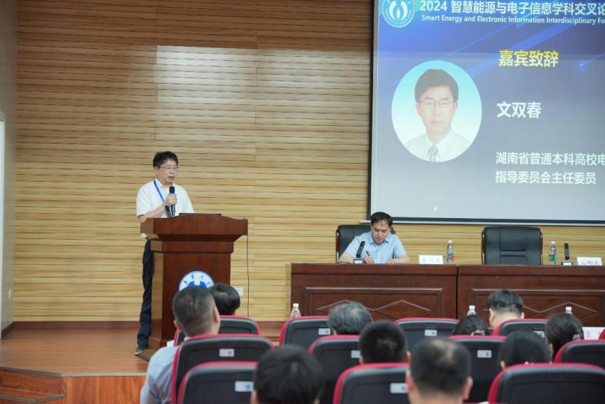 论坛由南华大学党委副书记雷小勇主持,高山教授致欢迎辞。高书记对与会专家的到来表示欢迎和感谢,并在致辞中强调,在全球能源转型和信息技术飞速发展的大背景下,智慧能源与电子信息技术的融合已成为发展新质生产力的重要着力点,也是推动社会进步的重要力量,本次论坛是符合教育发展规律会议,召开的正当时。