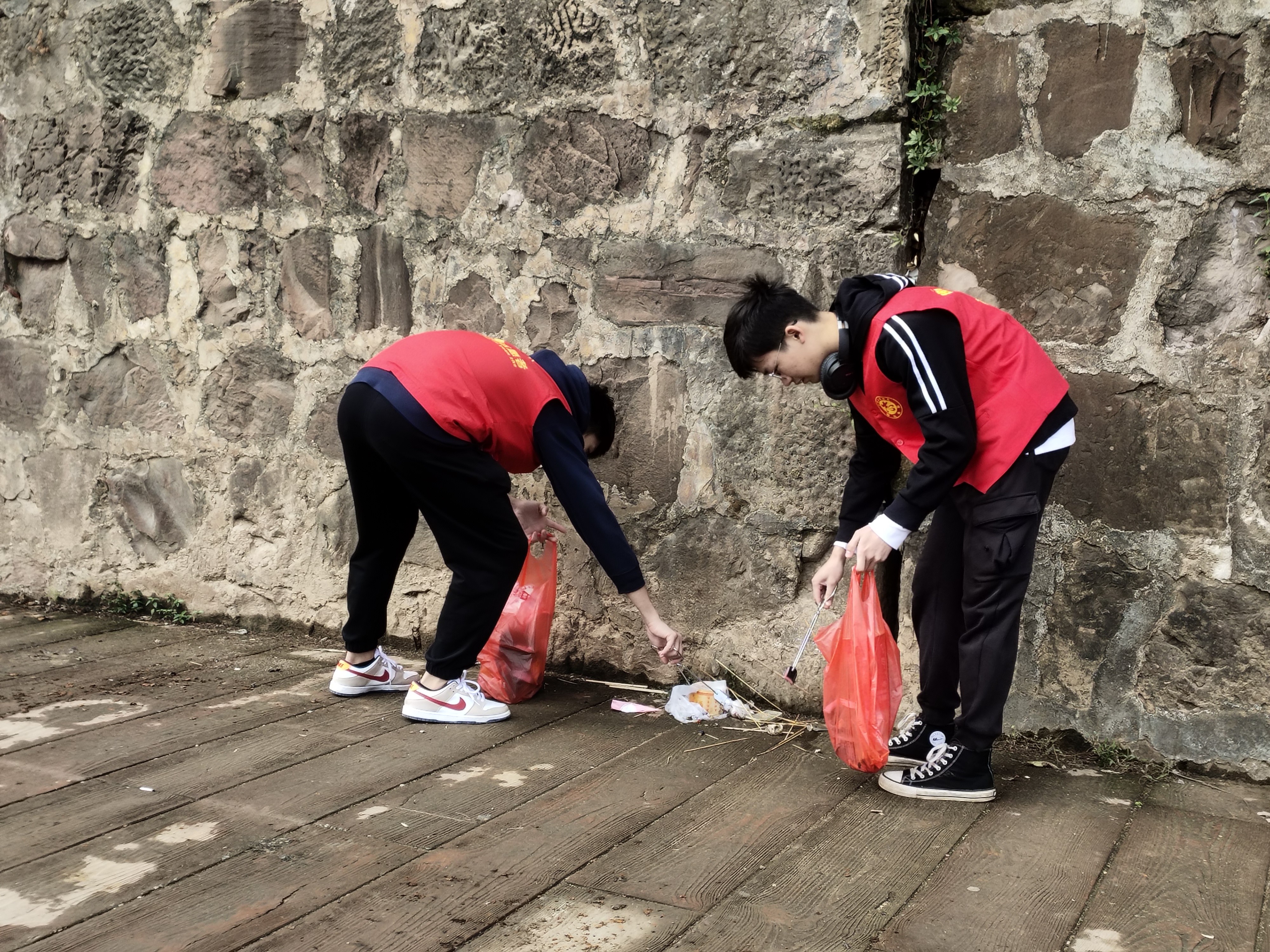 虽然清理湘江岸边的垃圾对于大家来说并不困难,但是道路上的小纸屑、石板间的小烟头,夹缝里的玩具子弹有很多,即便大家相互配合,彼此协作,也几乎用了2个小时的时间,共拾白色垃圾二十余袋,才把地面打扫干净。