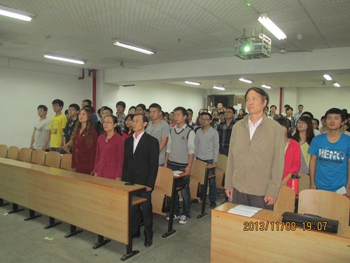 11月8日晚7:00,我院分党校2013年下学期入党积极分子培训班开班典礼于一教311正式开始。参加开班典礼的有院党委书记单长虹老师、党委副书记谭德明老师、学生第一党支部书记管龙陵老师、学生第三党支部书记周艳玲老师、学工室李娜老师,以及本次入党积极分子培训班的140名学员。