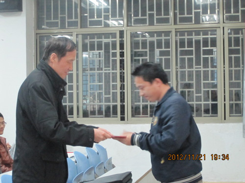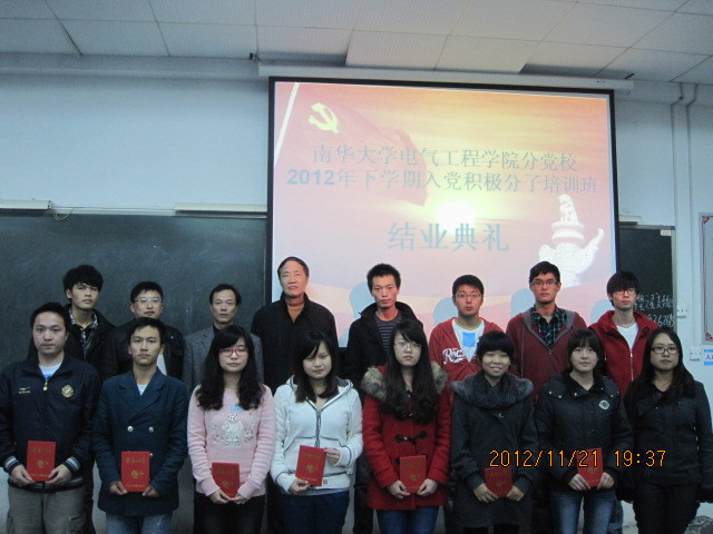 11月21日晚7:30我院分党校2012年下学期入党积极分子培训班结业典礼于九教102隆重举行。我院党委书记单长虹、学生党员第二支部书记李云忠、培训班班主任管龙陵、团委副书记鹿馨芳以及117名入党积极分子参加了此次典礼。