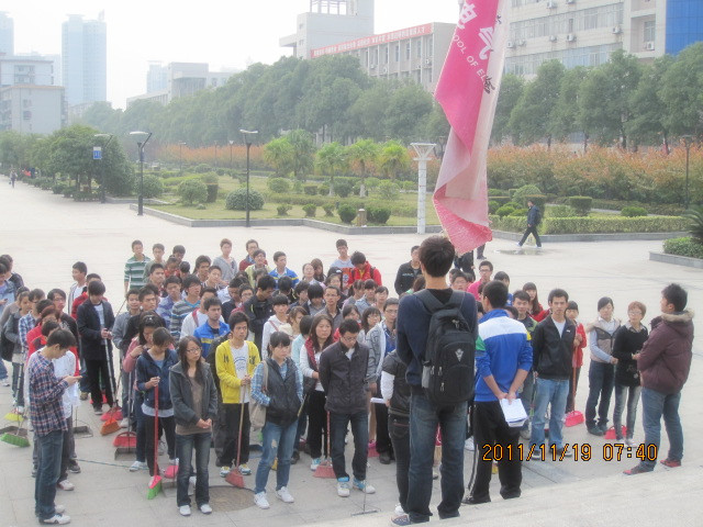 11月18日上午海角网入口于南华广场以“向垃圾桶靠近一小步,向文明迈进一大步”为主题开展了学院入党积极分子跨步行动,活动号召了全院各级入党积极分子对我校进行了大规模、高质量的清洁打扫。
