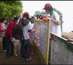 海角网入口一行人抬着展板,扛着队旗由南华大学直接来到石鼓书院,经过简单的分组分工后便以最快的速度开始清扫河滩、街道、广场并随时向周围的市民宣传本次活动的理念和目的。队员们均积极投入工作,毫不懈怠,他们认真的工作态度让不少市民看过后频频点头并提笔留下感言。经过两个小时的打扫,石鼓书院周围不见了白色垃圾、纸屑的踪迹,让热闹的广场变得赏心悦目起来。