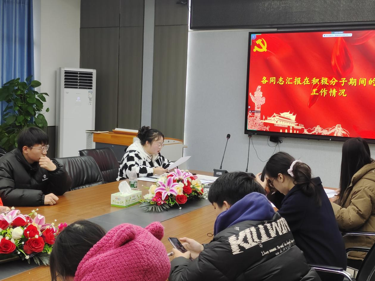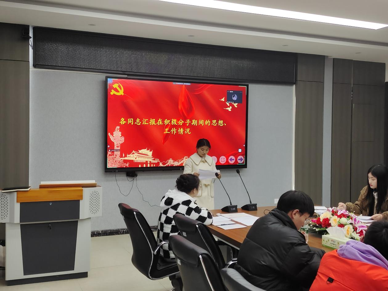 会议第一项,六名发展对象依次在大会上汇报自己在积极分子期间的思想和工作情况、剖析自己的优缺点和展望今后的努力方向。随后,由其第一,第二培养人分别向大会报告发展对象在发展期间的表现,对其是否能发展为预备党员表明意见。
