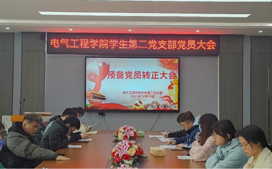 2023年12月19日,海角网入口学生第二党支部于电气楼B301会议室召开预备党员转正大会。支部书记周珍珍老师、全体学生正式党员和预备党员参会,会议由支部副书记徐可馨主持。