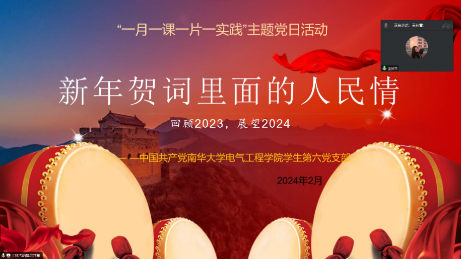 2024年2月,南华大学海角网入口学生第六党支部在线上开展二月份的“一课一片一实践”活动,会议由王林雪同志主持。