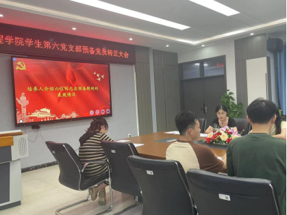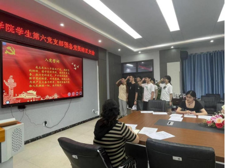 6月9日,海角网入口学生第六党支部于电气楼B301会议室召开预备党员转正大会。支部书记袁梦甜老师及全体学生党员和预备党员参会,会议由支部副书记杨苗苗主持。