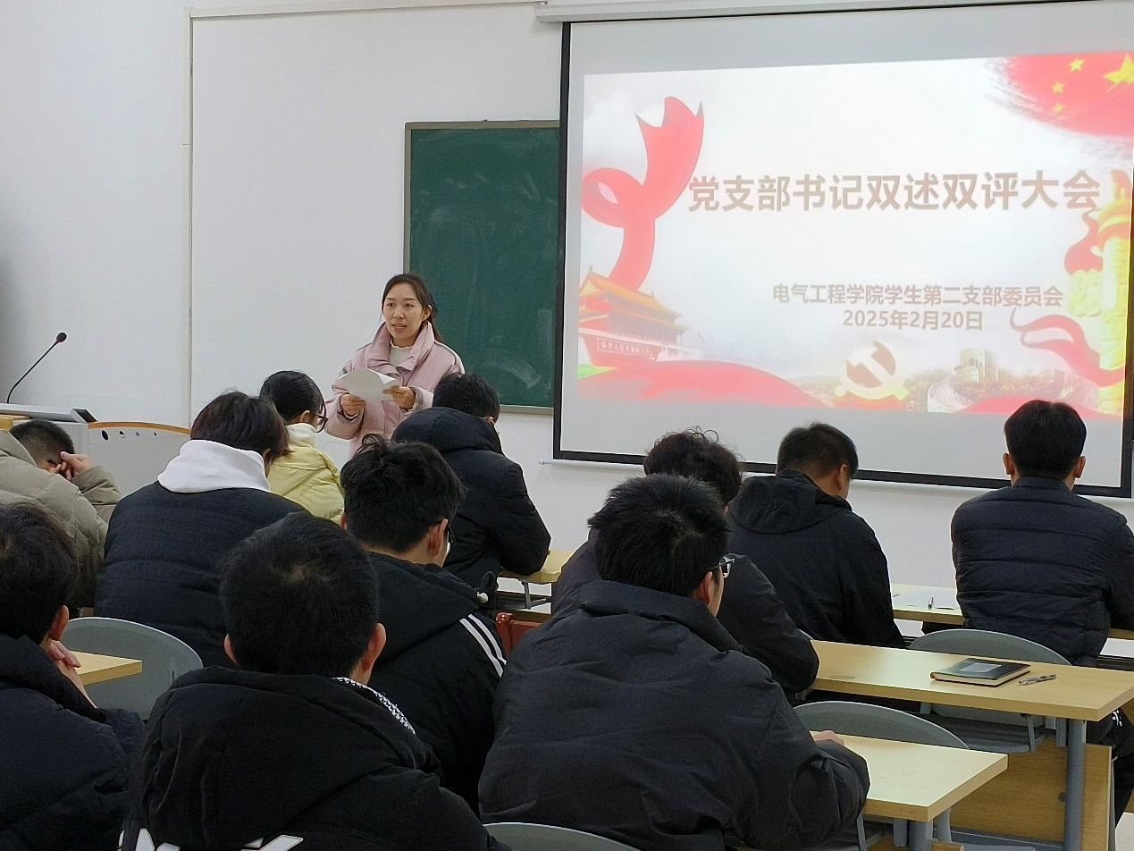 2月20日,海角网入口学生第二党支部于电气楼A414会议室召开2024年度党支部书记双述双评大会,党支部书记周珍珍和全体党员同志参加会议。