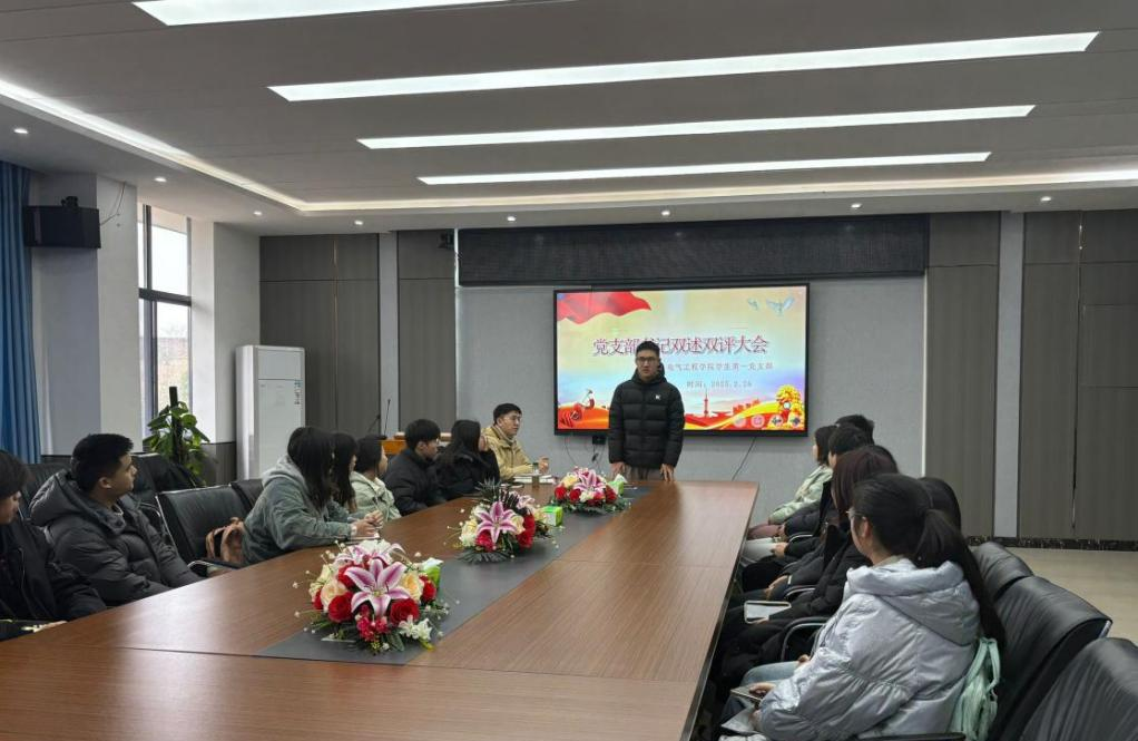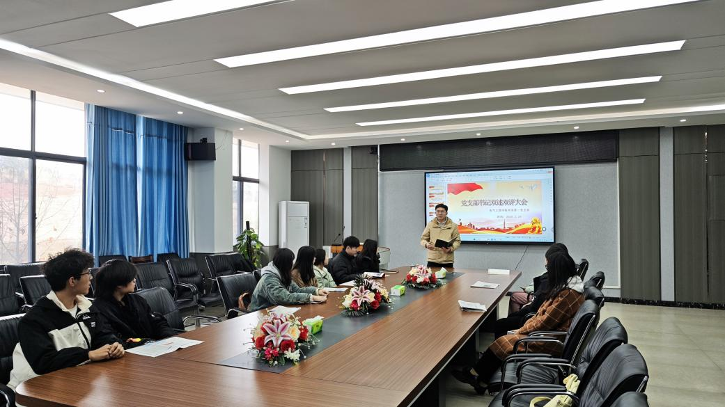 2月26日,海角网入口学生第一党支部于崇业楼B301会议室召开2024年度党支部书记双述双评大会,学生第一党支部书记蒋屹然、支部全体党员及预备党员参加会议,会议由支部副书记戴宇涛主持。